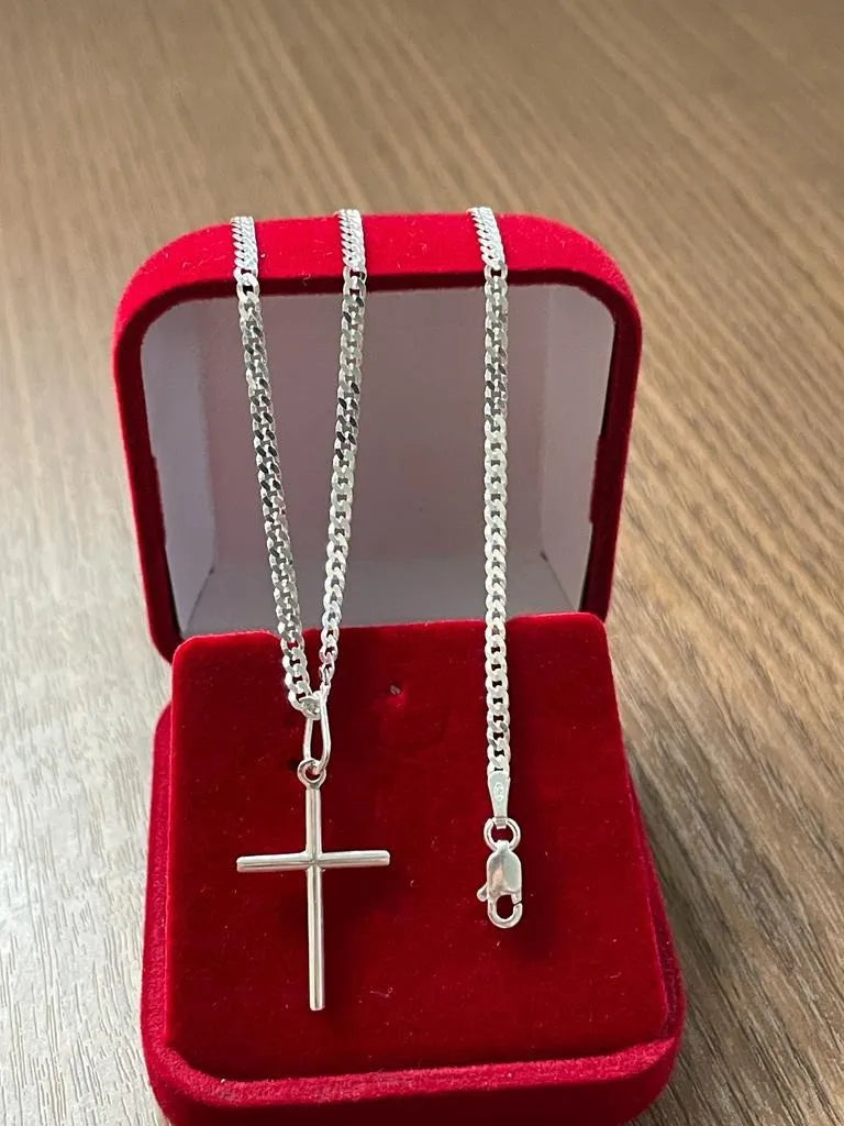Apresentamos a elegante Corrente Prata 925 com Pingente Crucifixo Escama De Peixe Fina, ideal para homens que buscam um acessório sofisticado e atemporal. Com um comprimento de 60 centímetros e uma espessura de 2 milímetros, esta corrente é leve, pesando apenas 6 gramas, proporcionando conforto durante o uso diário. O fecho em mosquetão garante segurança e praticidade. O pingente, com altura de 3 centímetros e largura de 1,5 centímetros, é delicado e feito em prata 925, pesando 1,1 grama. Este modelo de cordão masculino, com design grumet, não possui pedras, mas seu acabamento em prata 925 confere um brilho especial. A marca Aqua Jóias assegura qualidade e estilo, tornando este colar uma escolha perfeita para qualquer ocasião. Adicione um toque de elegância ao seu visual com este acessório que combina tradição e modernidade.