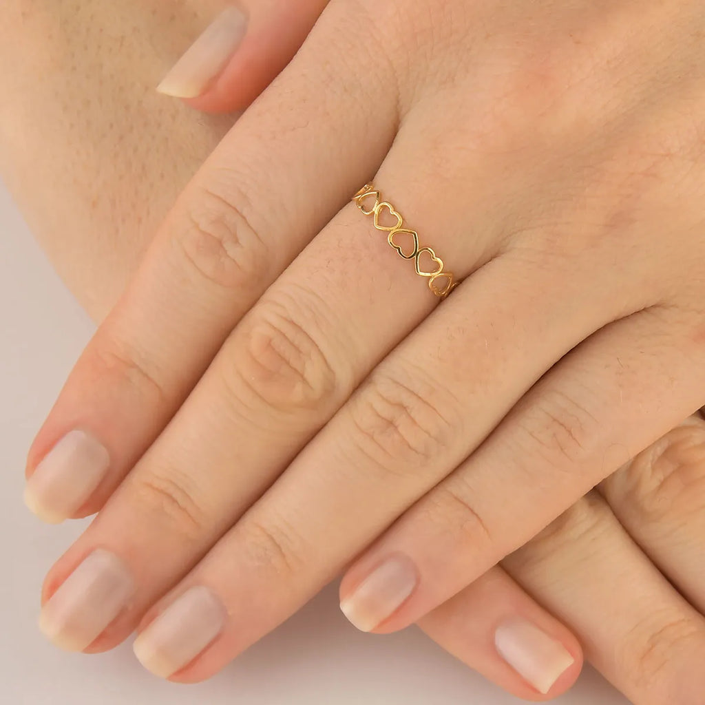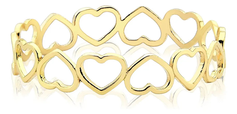 Anel Feminino De Ouro 18k Corações Vazados E Delicados