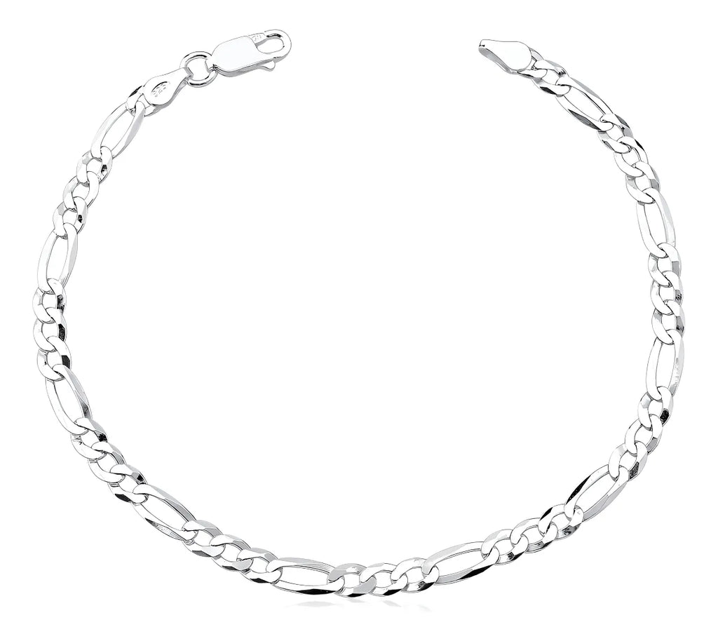 Pulseira Masculina De Prata 925 Italiana Fígaro 3x1 4.5mm 21 Cm==