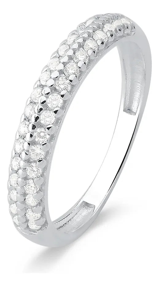 Anel Meia Aliança de Prata 925 Aparador 2 Fileiras Cravejadas: