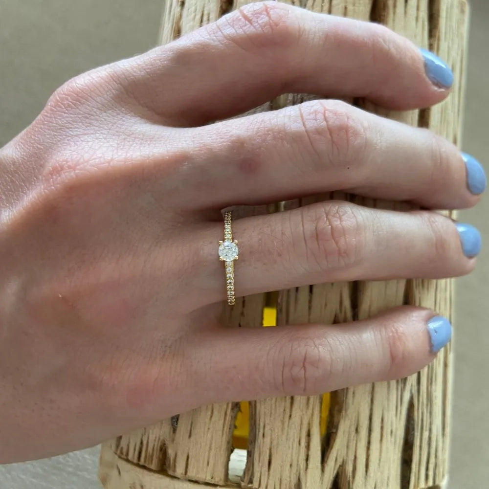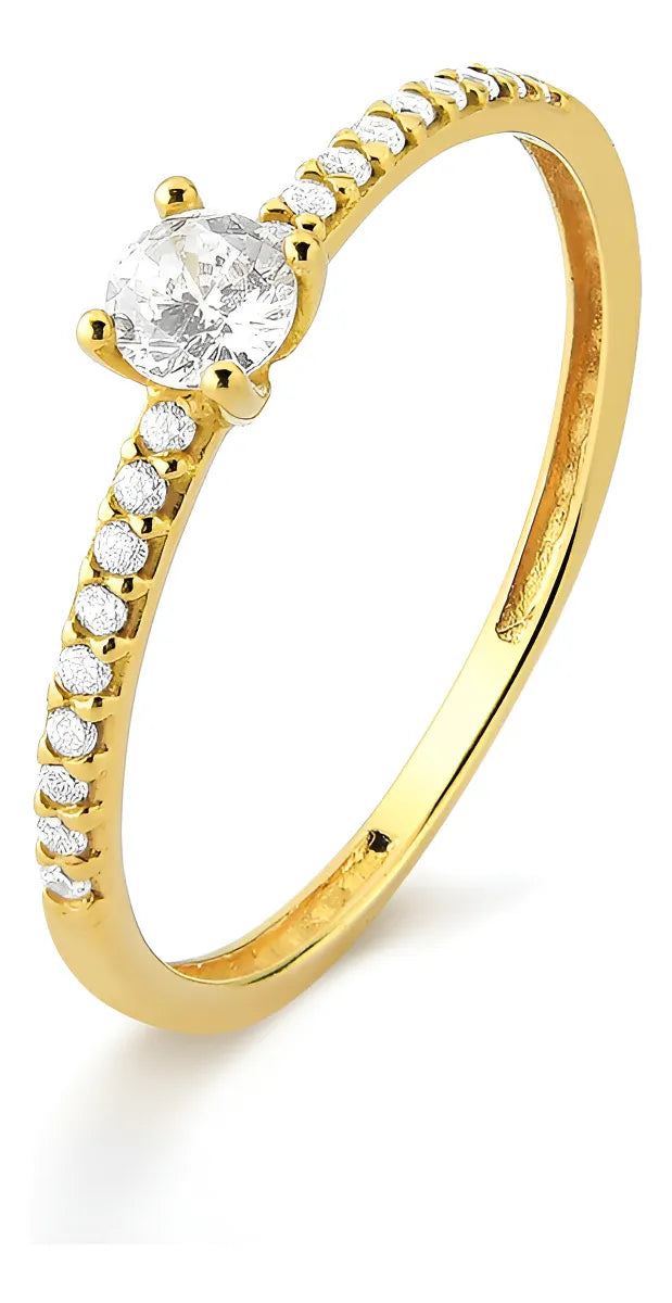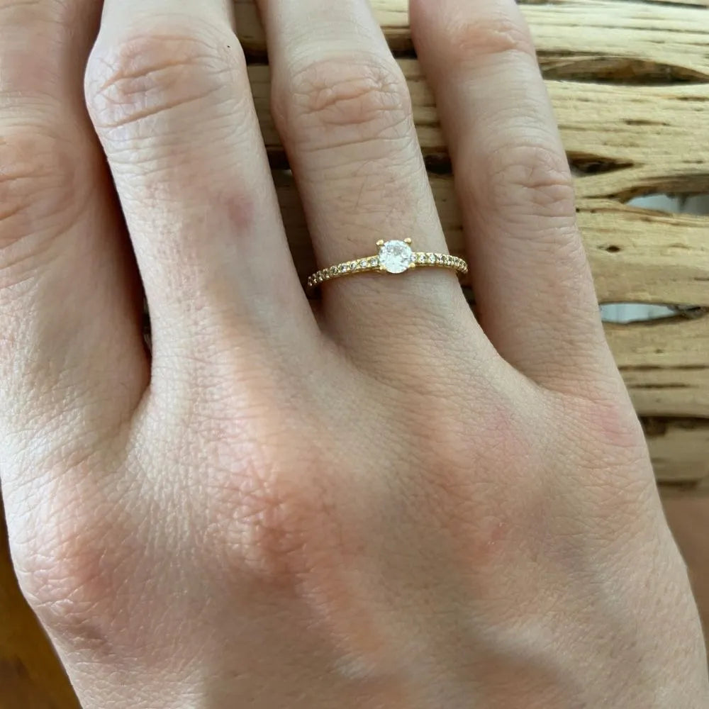 Anel Solitário com Pedras Cravejadas Ouro 18k
